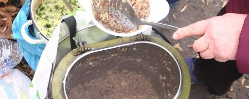 Цього разу обід складався з теплої гречки з ковбасою, салату з капусти, хліба та компоту. Волонтери приготували 60 порцій, та роздали трохи більше половини, зазначила волонтерка Ірина Ткалич.