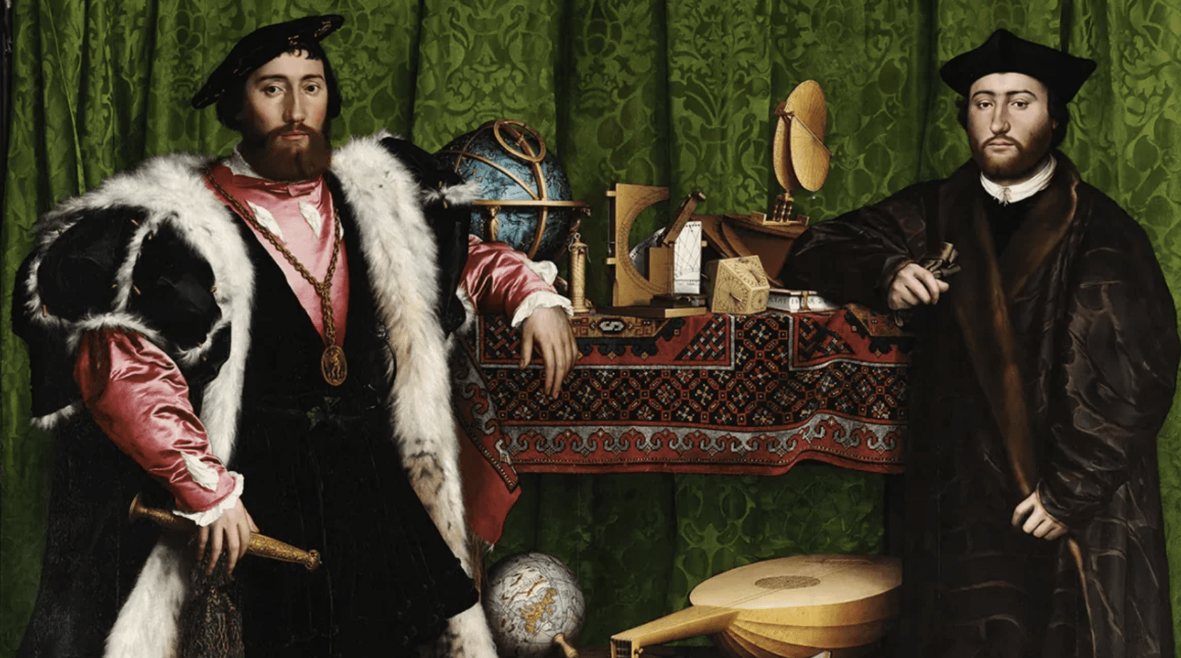 Картина Ганса Гольбейна Молодшого “Посли” (1533) – це не лише подвійний портрет двох впливових французьких дипломатів Жана де Дентевіля та Жоржа де Сельва, а й складний філософський трактат про знання, владу, релігійні розбіжності та марноту земного існування (vanitas).