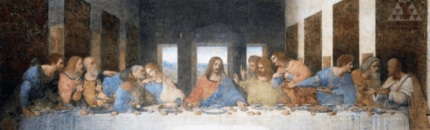 • Відсутність німбів: На відміну від традиційного зображення святих, Леонардо не малює німби над головами Ісуса та апостолів (або ж вони були ледь помітні і з часом зникли через поганий стан фрески). Це надає сцені більшої реалістичності та людяності. Божественне світло виходить від самого Ісуса, підкресленого центральним вікном на задньому плані.