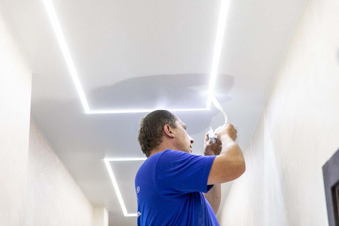 Великим плюсом натяжних стель є їх швидкий монтаж. Система складається з матеріалу та каркасу, на який він кріпиться. В середньому, встановлення займає до кількох годин, залежно від площі приміщення та складності роботи. У процесі не залишається багато сміття чи пилу, тож цей етап можна перенести на кінець ремонту.
