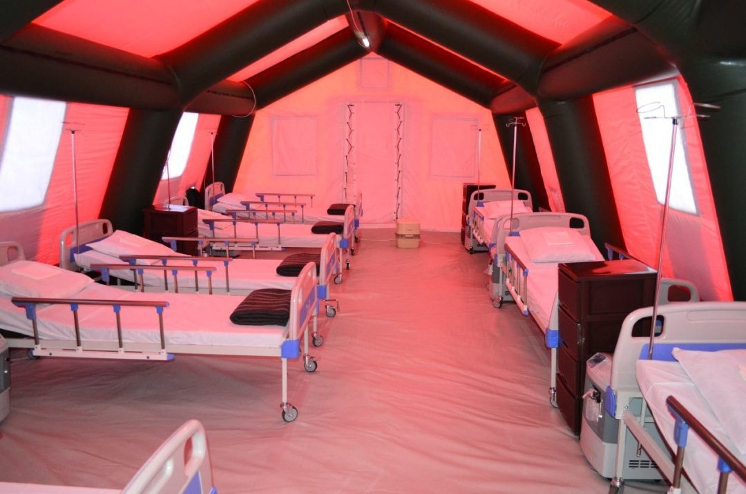 Надзвичайники на початку квітня розгорнули мобільний шпиталь на 120 ліжко-місць у місті Славута. Сам шпиталь доставили після дезинфекції з Івано-Франківська (в області кількість хворих на коронавірусну інфекцію пішло на спад).