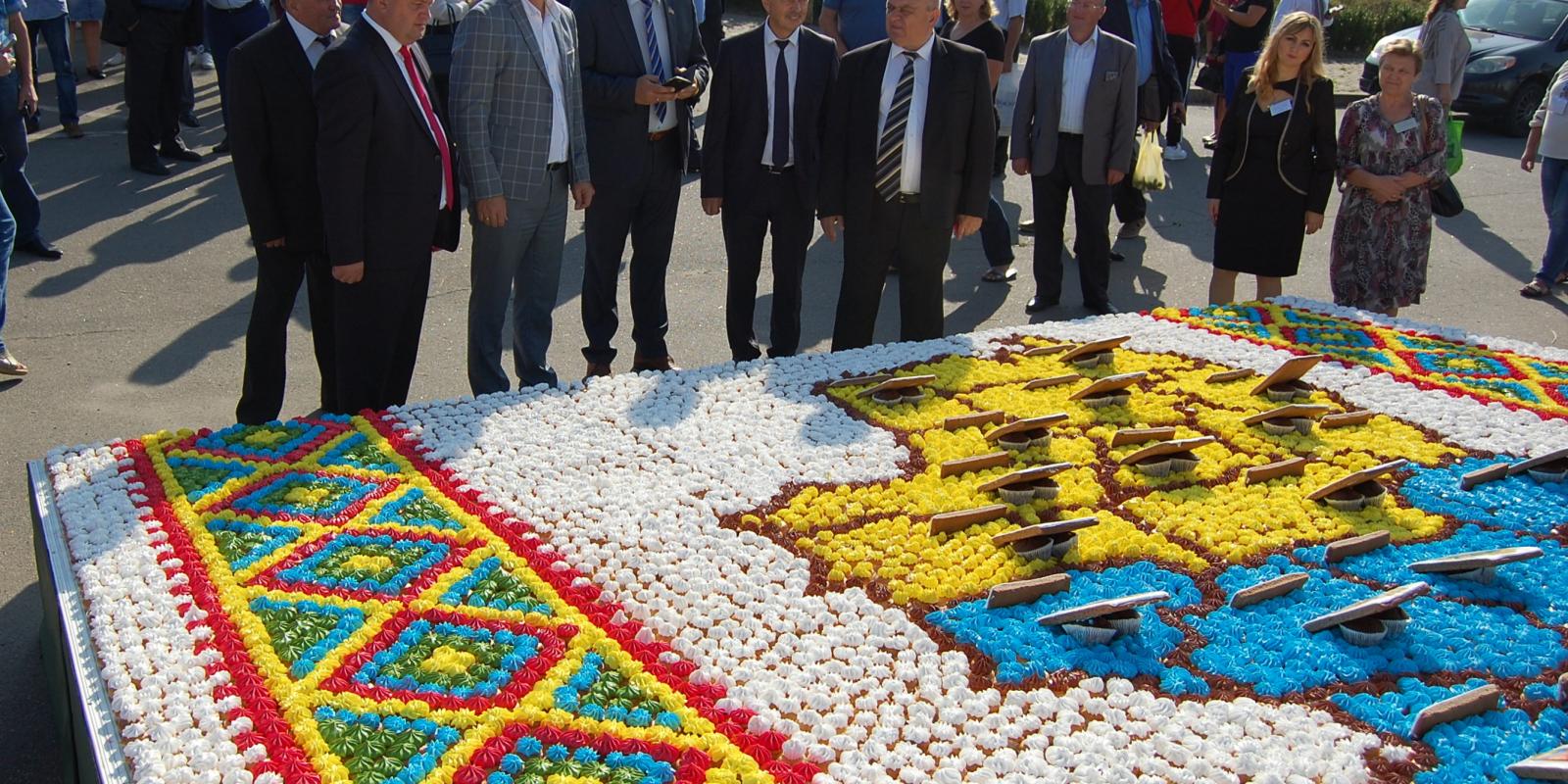 Нагадаємо, що минулого року на виставці «Агро-Поділля 2018» було встановлено новий рекорд. Коровай розміром 5х5 метрів з 8700 мафінів, на якому зображена мапа Хмельниччини, став найбільшим в Україні.